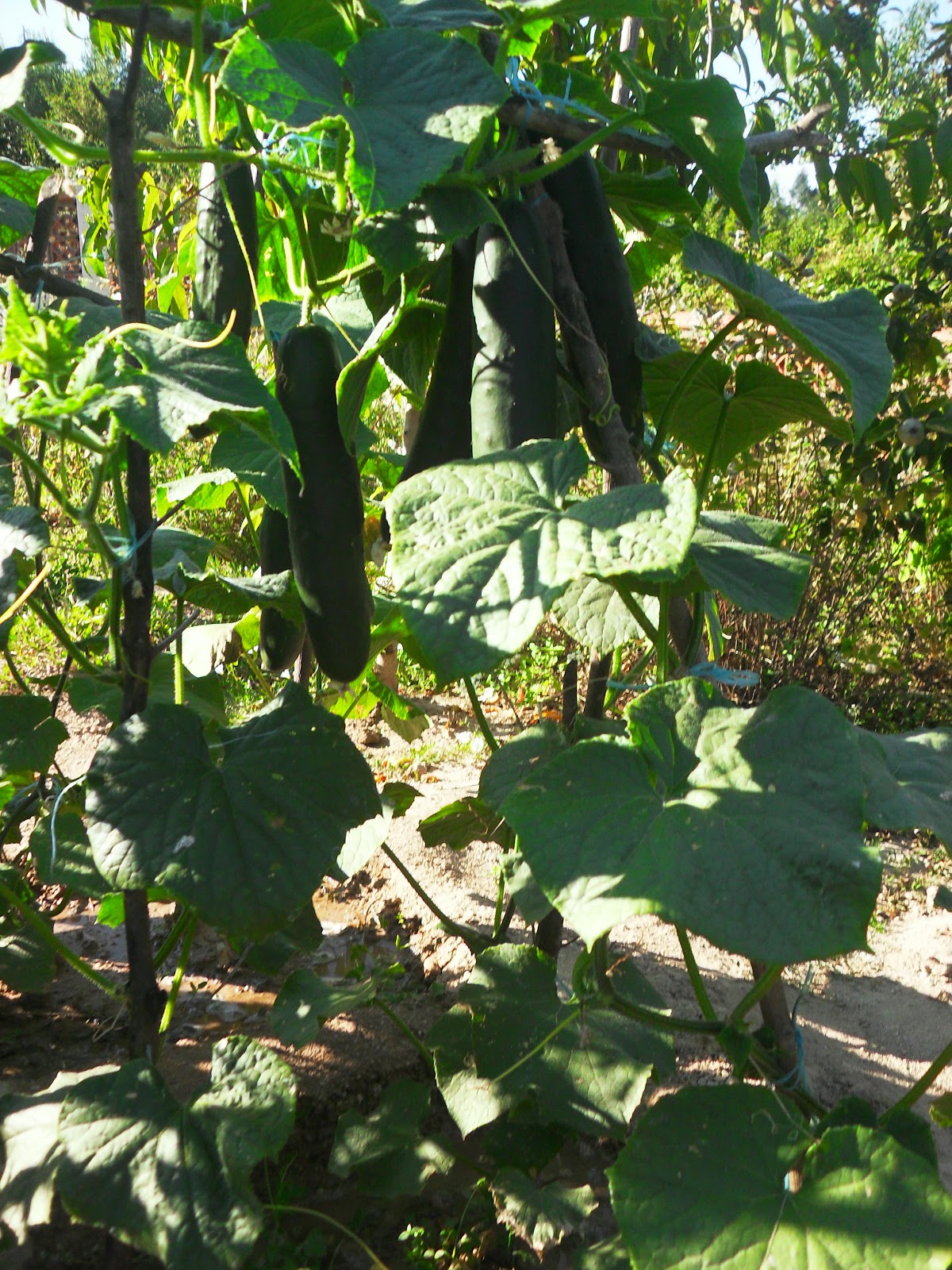os pepinos continuam a crescer grandes e saudáveis, apenas um pouco amargos, mas isso é fácil de ultrapassar, depois de apanhados corta-se o "cu" e retira-se-lhes o amargo