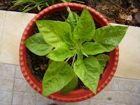 Não sei qual vai ser o tamanho dele, por enquanto tem apenas uns 30 cm, mas já tem uma flor aberta e mais duas a crescer...