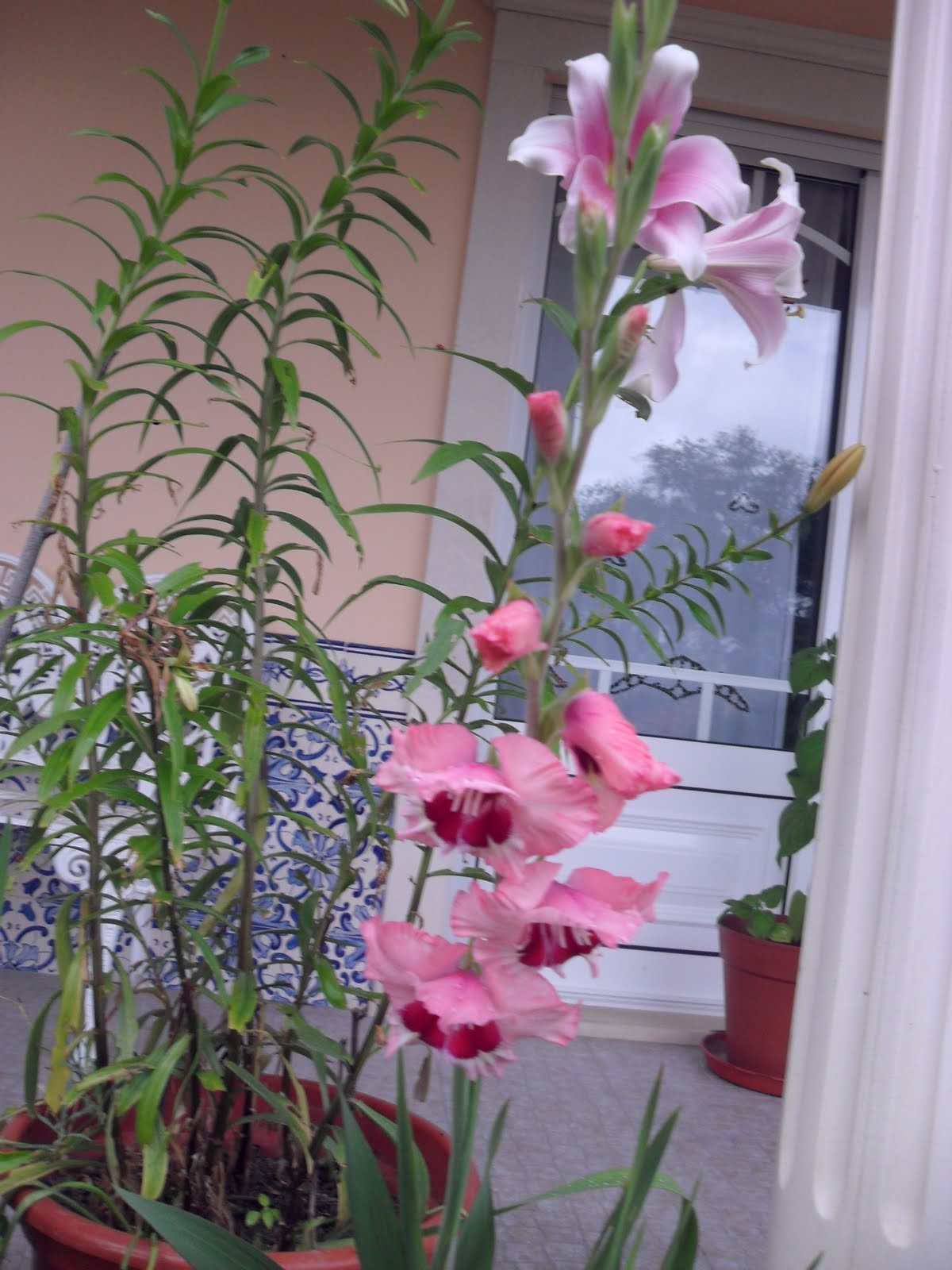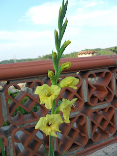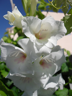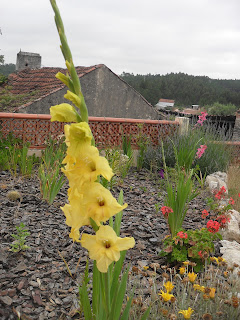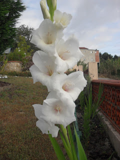 Sexta e Sábado foram divididos entre praia, piscina, quintal e jardim. Os alhos franceses estão alguns espigados e que lindas ficam as cabeças carregadinhas de sementes. No jardim há imensos gladíolos e coroas imperiais.